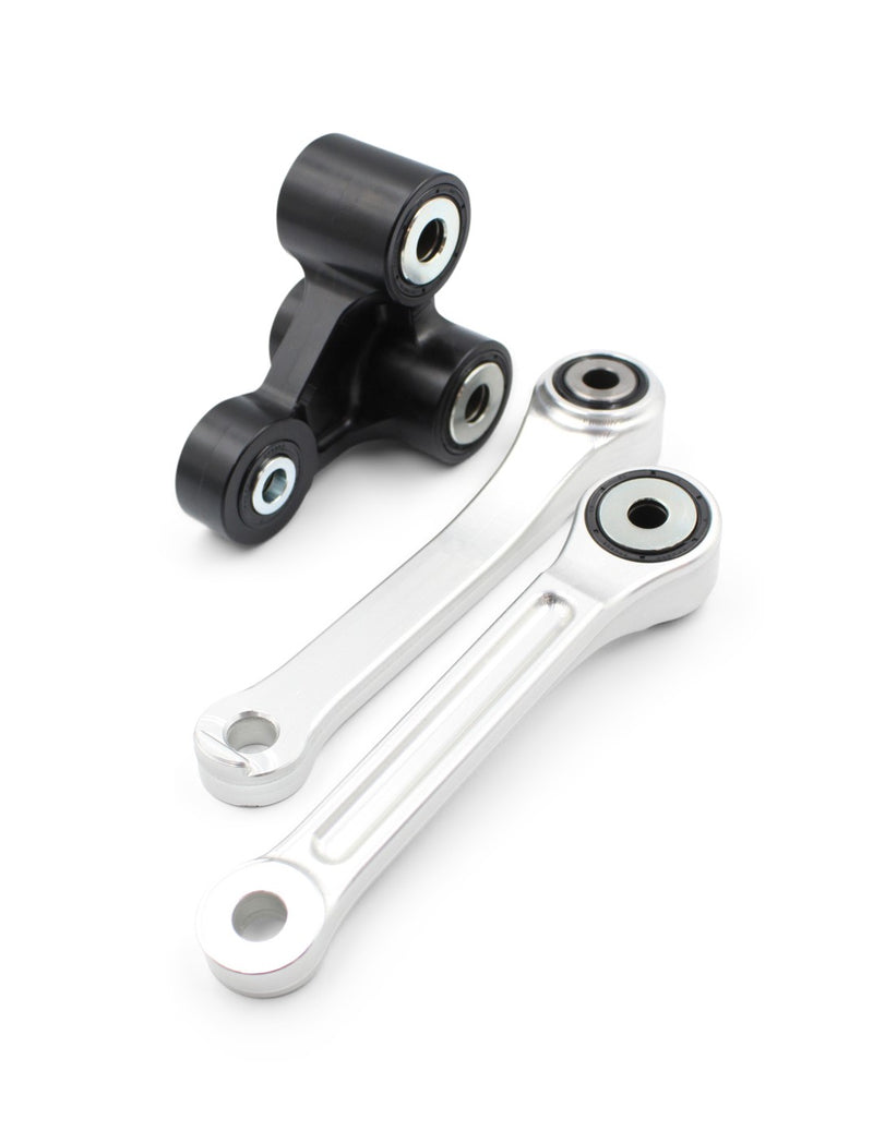 The Krooz Racing Honda CRF Linkage System is designed to address rear end shock spike and improve the challenging setup of the Honda CRF chassis. Unlike other linkages, this system is specifically engineered to maintain the bike's overall height and rider spring rate, ensuring that these important factors are not affected.